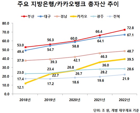 광주은행, 전북은행 등 일부 지방은행보다 10조 원 이상 자산이 더 많았고 총자산 기준 3위 지방은행인 경남은행을 바짝 쫓고 있는 상황이다.