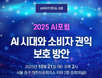 소비자가 만드는 신문은 10월 21일(화) 오후 2시 서울 중구 대한상공회의소 지하 2층 중회의실B에서 ‘AI 시대와 소비자권익 보호 방안’을 주제로 ‘2025 AI포럼’을 개최한다.
