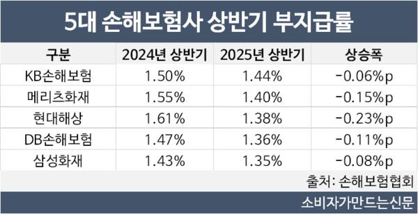 눈에 띄게 개선된 곳은 현대해상이다. 현대해상은 지난해 상반기 부지급률이 1.61%에 달하며 5대 손보사 중에서 가장 높았지만 올해 상반기엔 전년 동기 대비 0.23%포인트 떨어진 1.38%를 기록했다.