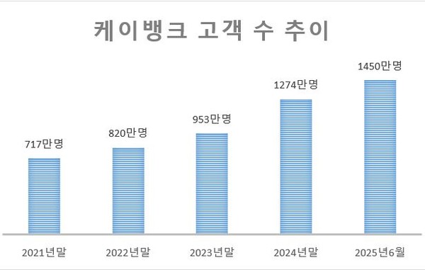 최 행장 부임 후 고객 수 증가도 가팔랐다. 최 대표 부임 전 953만 명 수준이던 고객 수는 상반기 1450만 명까지 늘었다. 부임 전 2년간 추이를 보면 약 200만 명 늘었는데 최근 1년 반 동안은 500만 명 가까이 증가했다.