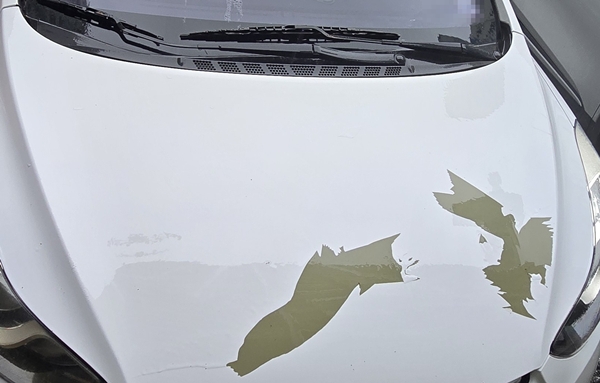 스팀 세차 이후 차 씨의 차량은 보닛 부분을 포함해 곳곳에 하얀 도색이 벗겨져 올리브색을 띤 안쪽면이 지저분하게 드러난 상태였다.