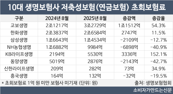 교보생명의 경우 지난해 저축성보험 초회보험료가 2조6337억 원을 기록했는데 올해 8월에 이미 3조 원을 돌파하며 지난해 연간 초회보험료를 넘어선 셈이다.