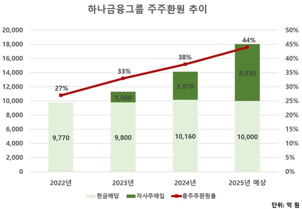 주주가치 제고 영역에서도 올해 연말 기준 예상 총주주환원율은 작년 말 대비 6%포인트 개선된 44%를 달성할 것으로 예측됐다. 2027년까지 목표로 한 총주주환원율 50%에 근접한 수치다.