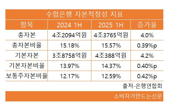 취임사로 내세운 자본 적정성 개선 목표도 올해 이뤄지고 있다. 올해 6월 말 기준 수협은행의 총자본비율은 15.57%를 기록해 전년 동기 대비 0.39%포인트 상승했고 보통주자본비율도 같은 기간 0.42%포인트 개선됐다.
