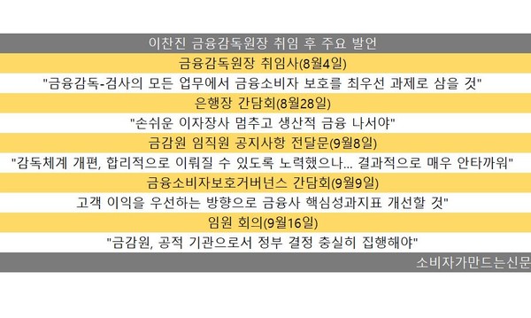 최근에도 다수 분쟁이 발생한 금융사고에 대해 직격탄을 날리며 소비자보호 강화 기조를 줄곧 강조하고 있다.