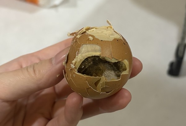 달걀 하나를 섭취한 후 얼마 지나자 배가 살살 아프기 시작했다. 다른 달걀도 껍데기를 까 보니 노릇해야 할 부분이 시커멓게 변질된 상태였다.