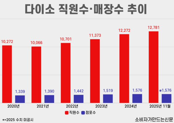 다이소 관계자는 “직영점 매장과 물류센터 인력을 정규직으로 직접 고용하고 있으며, 매장 수 증가에 따라 현장 인력도 함께 늘어나고 있다”며 “전국 단위 점포 운영과 물류 효율화를 동시에 추진하면서 안정적인 인력 운용 구조를 유지하고 있다”고 설명했다.