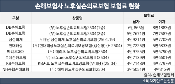 남성의 노후실손의료보험은 현대해상이, 여성은 DB손해보험의 상품 보험료가 가장 비싼 것으로 조사됐다.