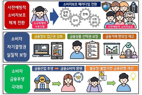 사전예방적 금융소비자 보호로 모니터링→위험 포착→감독·검사→시정·환류로 이어지는 ‘리스크 기반 소비자보호 감독 체계’를 구축, 소비자보호실태평가 체계 개편 및 실효성 강화를 추진한다는 목표다.