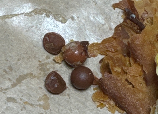 서울 도봉구에 사는 김 모(남)씨는 백화점에 입점한 유명 빵집에서 구매한 에그타르트를 먹던 중 이물질을 씹어 깜작 놀랐다. 뱉어 보니 구슬 모양의 나무였다. 김 씨가 씹은 것 외에 빵 속에서 두 개가 더 발견됐다.