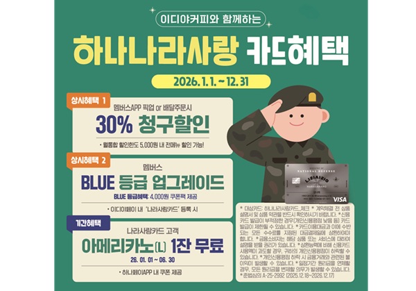 이번 협업은 나라사랑카드 3기 운영사인 하나은행과 함께 군 장병 고객과의 접점을 확대하기 위해 기획됐다. 기간은 2026년 1월 1일부터 12월 31일까지다.