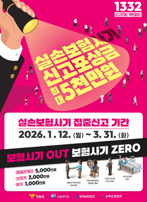 신고 대상은 전국 실손보험 사기 의심 병원과 의원, 의사, 브로커 등이고 포상금액은 최대 5000만 원이다.
