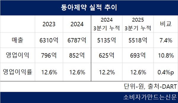 동아제약의 피부외용제 매출은 지난해 600억 원을 돌파했을 것으로 전망된다. 2024년 528억 원보다 13.6% 이상 증가한 수치다. 2023년엔 382억 원의 매출을 올렸다.