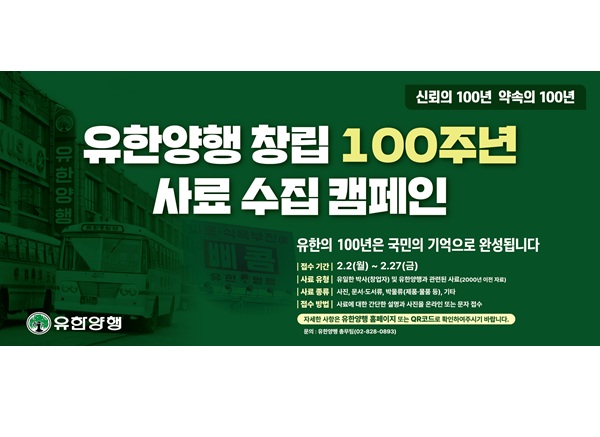 유한양행 관계자는 “유한양행의 100년은 한 기업의 역사를 넘어, 사회적 책임과 신뢰의 가치를 실천해온 시간”이라며 “이번 사료 수집 캠페인을 통해 국민과 함께 유한의 역사를 되돌아보고, 다음 100년을 향한 의미 있는 기록을 남기고자 한다”고 말했다.