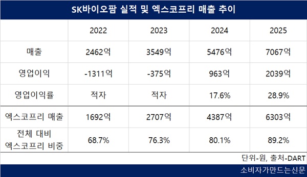 엑스코프리는 특허가 만료되는 2032년 말까지 성장이 지속될 것으로 기대되는 품목이다. 이를 바탕으로 증권가에선 SK바이오팜의 내년 매출을 9183억 원, 2027년엔 1조 원을 넘어설 것으로 전망하고 있다.