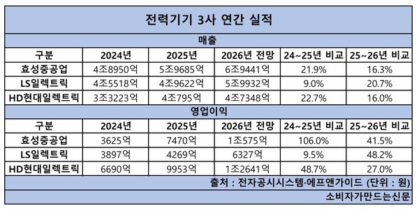 25일 전자공시시스템에 따르면 전력기기 3사는 지난해 매출과 영업이익이 모두 역대 최대를 기록했다.