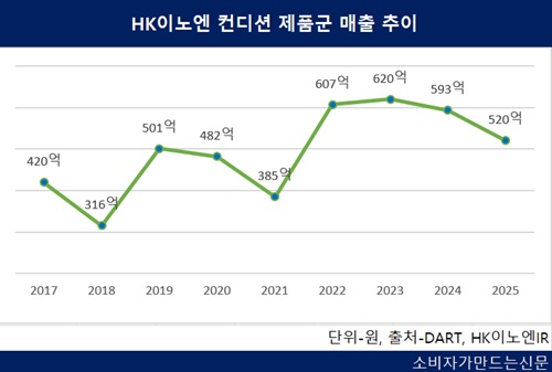 컨디션 제품군 매출이 공개되기 시작한 2017년부터 살펴보면 2023년 620억 원으로 고점을 찍은 후 지난해까지 2년 연속 감소했다.