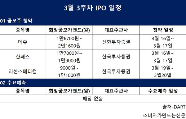 핀테크 업체 한패스도 코스닥 상장을 위해 16일 17일 이틀간 공모주 청약을 진행한다. 희망 공모가는 1만7000원~1만9000원이다. 최종공모가는 16일 확정될 예정이다. 대표주관사는 한국투자증권이고 공동주관사는 대신증권이다.