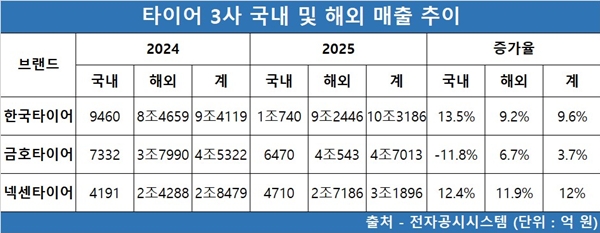 한국타이어앤테크놀로지(대표 안종선·이상훈, 이하 한국타이어)와 넥센타이어(대표 김현석)는 유럽에서, 금호타이어(대표 정일택)는 북미에서 매출이 두 자릿수 비율로 증가했다.