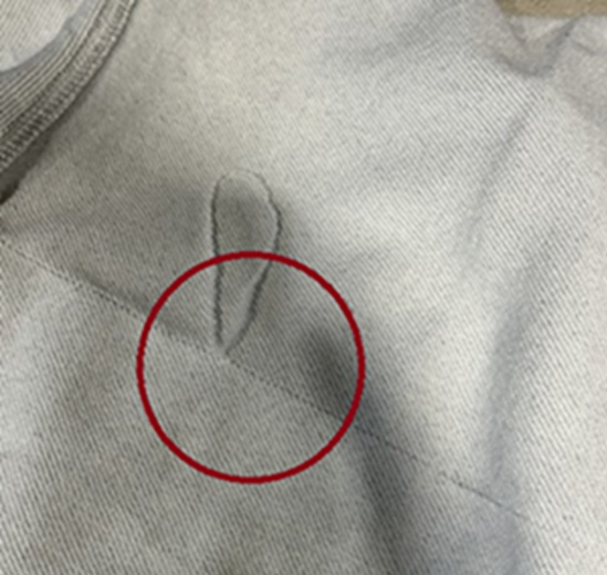 임 씨는 제품 착용 전 안감 박음질 일부에서 누가 잡아당긴 것처럼 실이 고리 형태로 빠져나온 것을 발견했다. 단순히 실밥 문제가 아닌 원단 조직 불량으로 인한 올 풀림 현상으로 추가 손상 우려가 있다는 게 임 씨 주장이다.