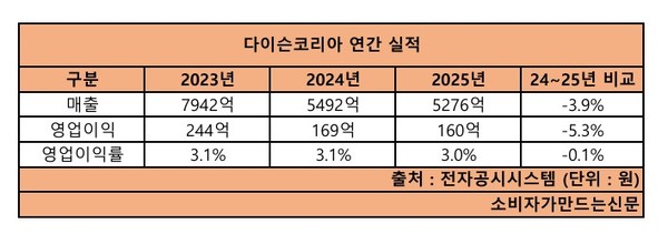 실제 다이슨코리아는 2023년 매출 7942억 원으로 정점을 찍은 뒤 지난해 매출 5276억 원, 당기순이익 160억 원을 기록하며 성장세가 한풀 꺾인 상태다.