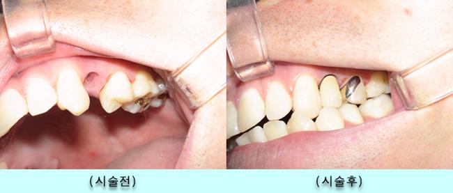 결국 상하지 않은 자연니에는 아무런 손상을 입히지 않은채 인공치아를 장치함으로써 자연니를 깨끗하게 보전하고 수명이 다해 재시술이 필요한 경우에도 아무 제한을 받지 않는 장점이 있다.