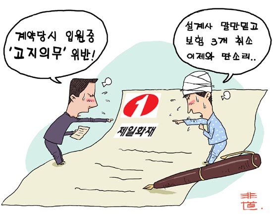 제일화재 계약자의 보험 강제해지를 두고 ‘고지의무 위반’이란 업체 측 입장과 ‘보험 설계사의 속임수’라는 소비자의 주장이 팽팽히 맞서고 있다.