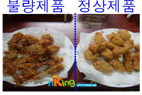 지난 4월 중순경 납품받은 ‘체리부로 후라이드’ 조리 시 튀김가루가 벗겨지고 육질이 딱딱하게 변해 정상제품으로 판매하기 어렵다는 판단으로 납품업체에 반품 및 교환을 요구했다. (사진 참조)