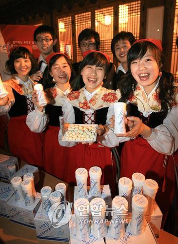 새로운 형태의 씹어먹는 유산균 Hej Denmark(헤이 덴마크)' 출시를 기념, 지난 4월 27일 오후 서울 남산국악당에서 열린 헤이 덴마크 콘서트에서 도우미들이 헤이 덴마크 제품을 홍보하고 있다.