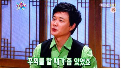 그는 이어 “하지만 MBC를 나가는 과정에서 실수를 많이 했다”며 “나를 믿어주던 분들에게 ‘그만두겠다’는 말을 할 용기를 내지 못해 결국 일을 어렵게 만들었다”고 잘못된 부분이 있었다는 것을 시인했다. MC 강호동이 “그럼 프리 선언한 것에 대한 후회한 적이 있겠다”고 묻자 그는 “몇 번 후회한 적이 있었지만 지금은 그렇지 않다”고 말했다.