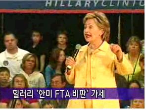 오마바이어 힐러리까지 한미FTA 반대에 가세했다.