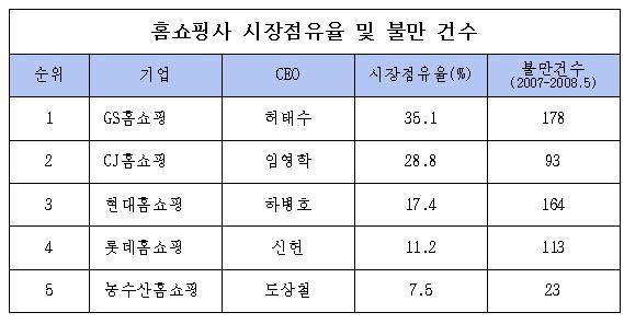 한국소비자원과 본보에 접수된 5개 홈쇼핑 관련 소비자 불만·피해 접수 건수는 2007년부터 2008년5월27일 현재까지 GS홈쇼핑 178건, CJ홈쇼핑 93건, 현대홈쇼핑 164건, 롯데홈쇼핑 113건, 농수산홈쇼핑 23건으로 나타났다.