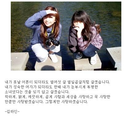 또한 김성은은 프로필 게시판에 ‘내가 훗날 어른이 되더라도 열여섯 살 열일곱 살처럼 살겠습니다. 내가 성숙한 여자가 되더라도 한때 내가 눈부시게 투명한 소녀였다는 것을 잊지 않고 살겠습니다’는 내용의 김하인 시인의 ‘소녀처럼’ 글귀를 담아 여고생으로서의 순수함을 드러내기도 했다.