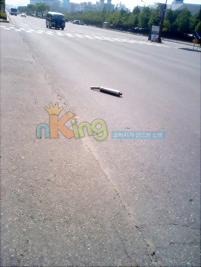 지나가던 사람이 차를 세우더니 정부청사 정문에 머플러가 떨어져 나뒹굴고 있다고 알려줬다. 정부청사로 가보니 길 한가운데에 머플러가 떨어져 있었고, 일부 차들이 밟고 지나가기도 했다.