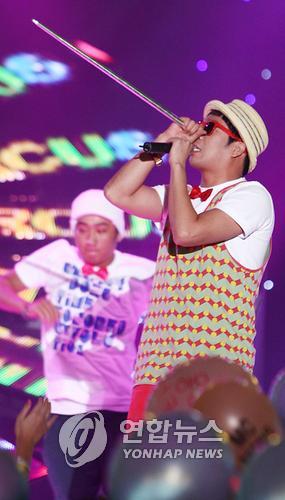 MC몽이 12일 오후 부산 해운대 벡스코에서 진행된 Mnet '엠카운트다운' 생방송 무대에서 1위로 뽑혀 밝은 표정으로 앵콜곡을 부르고 있다.
