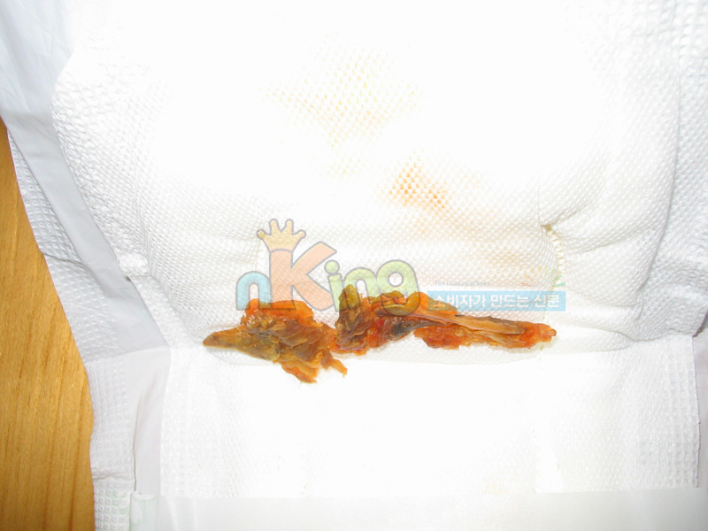 생리대 안쪽에 붉은 색을 띠는 닭뼈같은 이물질이 심하게 부패된 냄새를 피우며 덩그라니 놓여 있던 것.