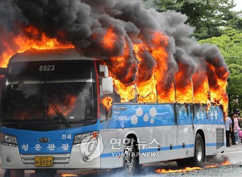 저 버스에 화염 방사기로 불지르면 전체를 태울수도 있다.