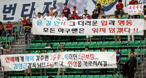 김성근 SK 감독은 이날 경기 전 당분간 자숙하는 의미에서 윤길현을 경기에 내보내지 않겠다고 밝혔고 광주에서도 경기 전 이종범과 최경환이 행동이 잘못됐을 뿐 윤길현을 매도해서는 안된다고 팬들에게 노여움을 풀 것을 공개적으로 촉구했지만 팬들의 분노는 쉽게 가라앉지 않고 있다.(연합뉴스)