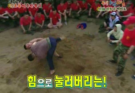멤버들은 해병대 대원들과 축구 경기를 마친 뒤 씨름 경기를 펼쳤다.