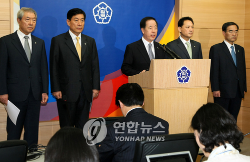 김경한 법무부장관, 원세훈 행정안전부장관, 유인촌 문화체육관광부장관 이영희노동부 장관과 조중표 국무총리실장은 29일 오후 3시 세종로 정부청사 별관 브리핑룸에서 긴급 대국민담화를 갖고 이 같이 발표했다.