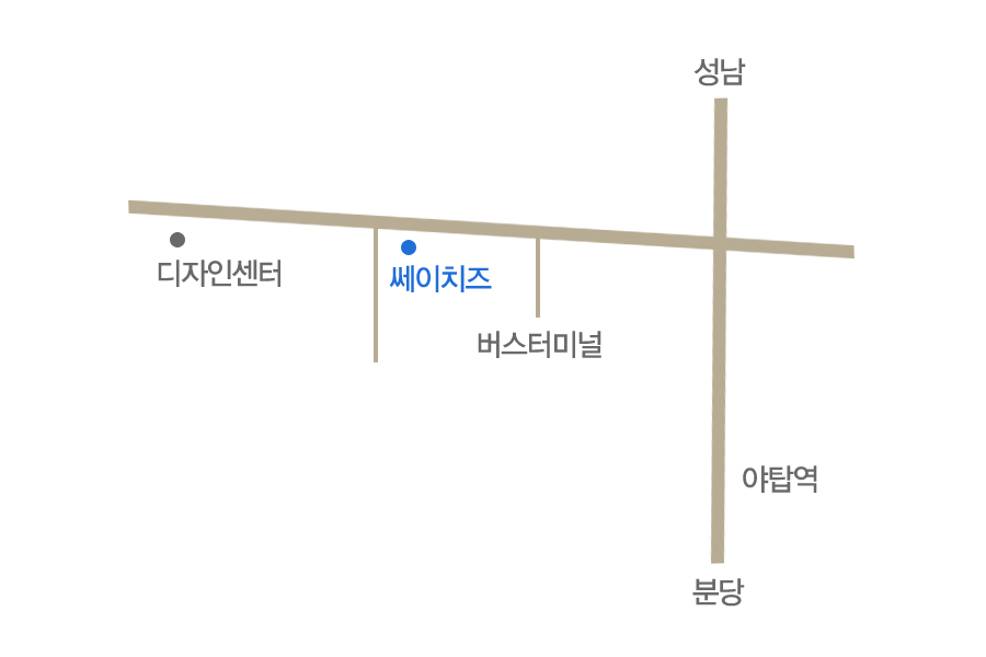 분당 야탑역에서 시외버스터미널과 디자인센터를 잇는 대로변 리더스빌딩 1층 코너에 있다.