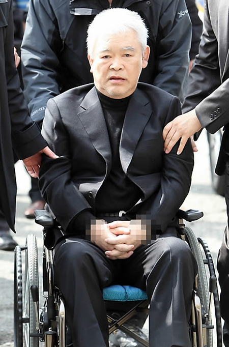 전국 최대 폭력조직 칠성파 두목 이강환(67세) 씨가 6일 휠체어를 탄 채 부산 연제경찰서로 압송됐다.