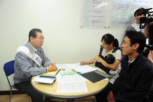 정 회장은 17일 화곡동 까치산 재래시장에 위치한 포스코 미소금융 서울지점에서 대출 희망자들을 상대로 상담 활동을 했다.