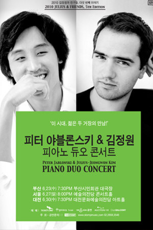 피아니스트 김정원이 피터야 블론스키와 함께 피아노 듀오 콘서트를 선보인다. 이번 무대는 클래식 프로젝트 ‘김정원과 친구들’의 다섯 번째 공연이다. 이 공연은 6월 23일 부산을 시작으로 서울 예술의전당, 대전에서 공연될 예정이다.