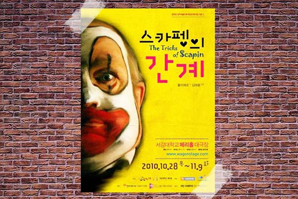 스카펭이란 교활한 아첨꾼을 이른다. 간계 역시 간사한 꾀를 지칭하는 말이다. 포스터의 배경이 되는 노란색은 부정적으로 작용할 때 파괴적일 수 있다. 속임수, 기만, 아첨, 감언이설 등을 상징하기 때문이다. 컬러의 배합이 매우 감각적인 이 포스터의 색상 대비는 간사해 보이는 남자의 얼굴을 더욱 부각시킨다. 광대 분장과 잘 어울리는 표정의 남자는 스카펭이란 말이 참으로 적격이다.
