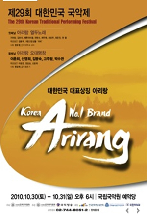 이번 국악제는 ‘KOREA No.1 BRAND ARIRANG ; 대한민국 대표상징 아리랑’이란 주제로 우리나라를 상징하는 아리랑을 한국의 대표 브랜드로 만드는데 앞장선다. 이틀 동안 펼쳐지는 ‘제29회 대한민국국악제’에서 1930년대 이후 아리랑의 대표곡인 가요아리랑과 민요아리랑 등을 만날 수 있다.