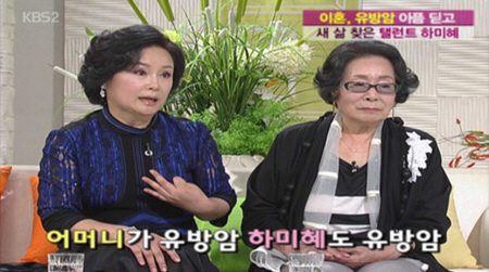 이날 방송에서 하미혜는 “미국에 있을 당시 유방암 발병은 어머니가 먼저였다. 외손자 사랑이 극진해 어머니는 방학 때 수술을 하기로 결심했다”고 운을 땠다.