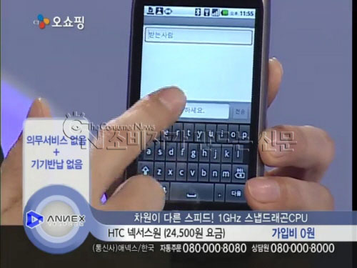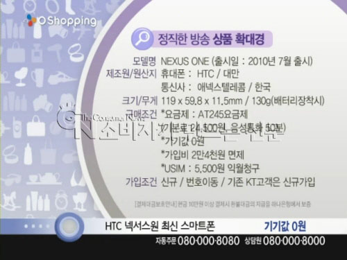 ▲ CJ홈쇼핑에서 제공한 캡처화면. 에넥스텔레콤 제품임을 명시하고 있지만 정작 별정통신사에 대한 사전지식이나 정보가 없는 소비자들이 많아 개선이 필요하다.