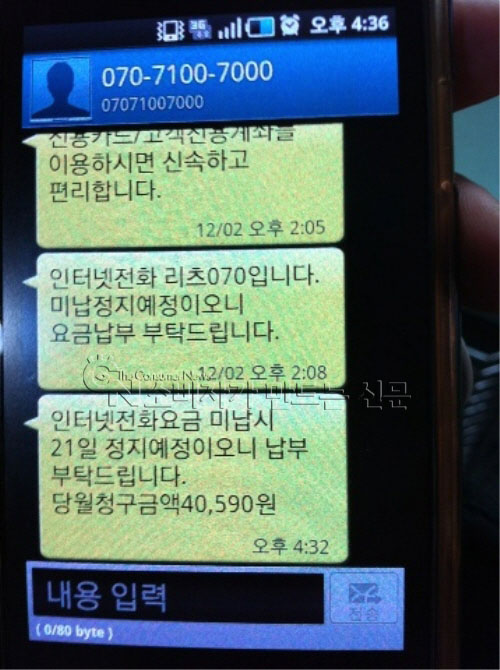 통화 자체가 연결되지 않으니 해지도 불가능했다. 그렇게 3개월 정도가 지나 반쯤 포기하고 있을 때쯤 문자로 요금이 청구됐다. 한 달 요금이 무려 4만500원에 달했다. 일반 집전화보다도 몇 배가 비쌌다.