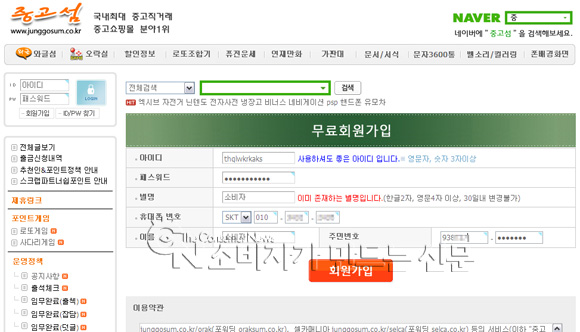 소비자가 만드는 신문이 휴대폰 인증 제보가 빗발치는 중고섬 사이트에서 회원가입을 직접 시도해 봤다.